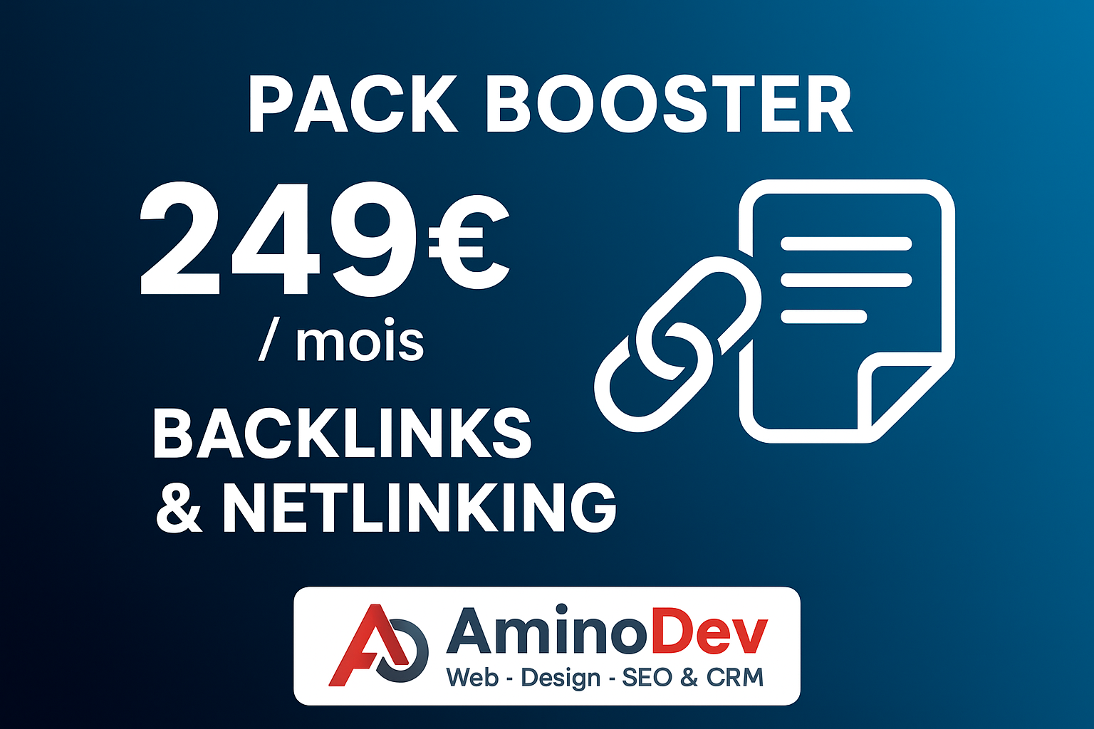 Pour seulement 249 € par mois, PACK BOOST vous permet de prendre le contrôle de la stratégie SEO de votre site web. Que vous soyez propriétaire d’une petite entreprise cherchant à développer votre présence en ligne ou gestionnaire de site web à la recherche d’un meilleur classement, PACK BOOST vous offre les résultats que vous souhaitez. Commencez dès aujourd’hui à maximiser votre croissance en ligne grâce à cette offre SEO tout-en-un.